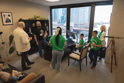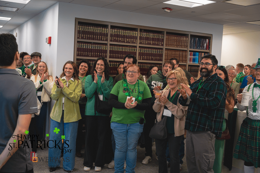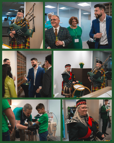 The celebration included a number of festive touches, with live music from a bagpiper and drummer, as well as a face painter, balloon artist, and even a magician—creating an enjoyable experience for guests of all ages. We were also treated to an Irish dance performance by one of our talented attorneys, Yuri Klinkenbergh, which added a special and memorable element to the morning.